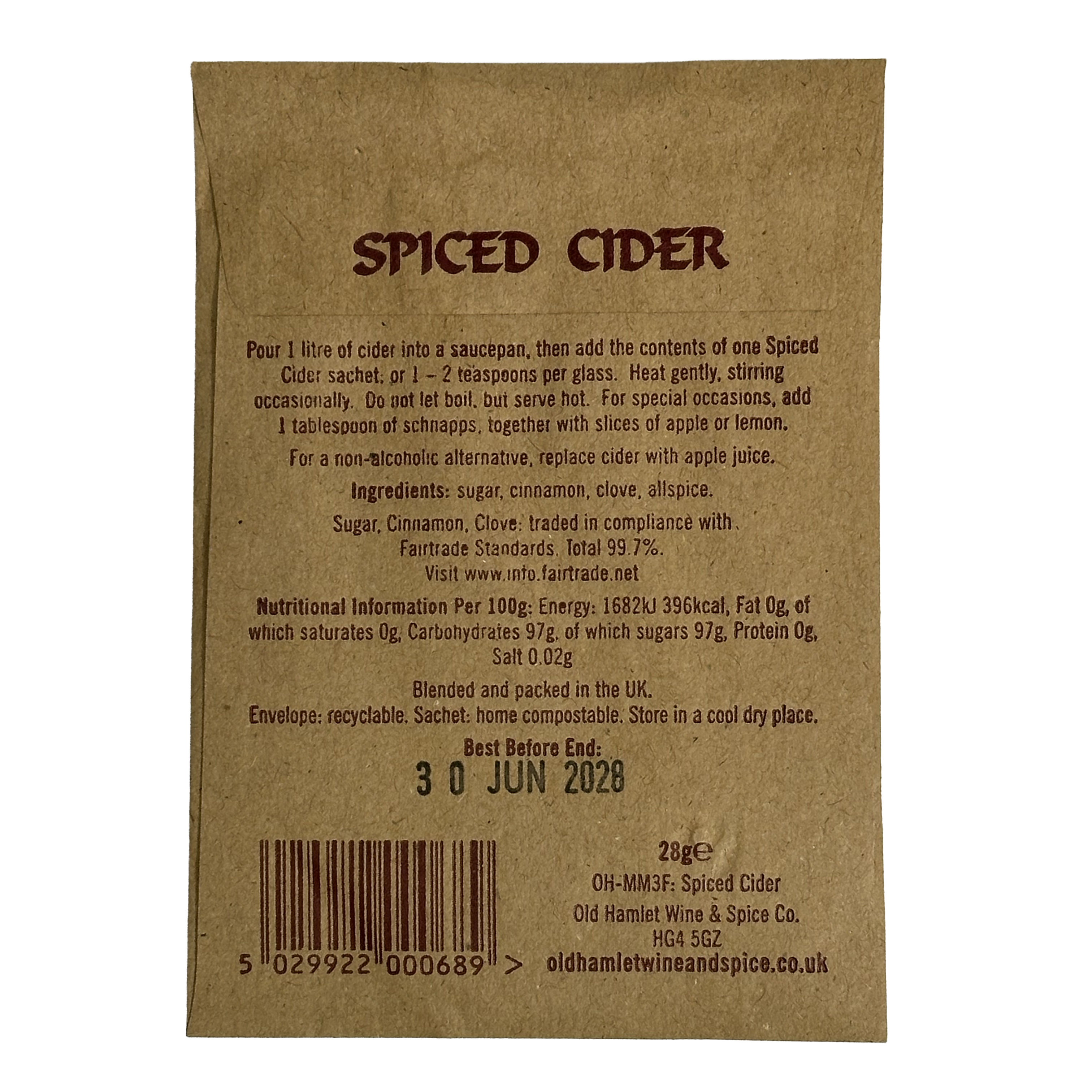 Experience the rich heritage of Old Hamlet with our Fairtrade Spices for Mulled Cider and Apple Juice, conveniently packed in single serving paper envelopes. Each sachet contains hand-blended mulling cider mix, crafted from family recipes dating back to the mid-1970s.