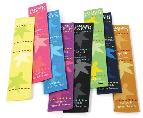 Our incense is handmade from natural oils, aromatic roots, herbs and flowers. The packaging is recycled paper which has been dyed and screen-printed by hand.