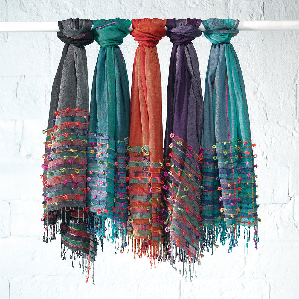 This Indian looped scarf comes in 5 beautiful, rich colours with a funky loop design at the ends.